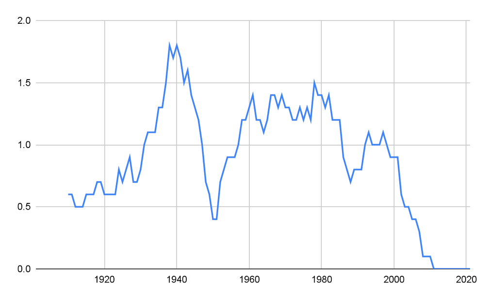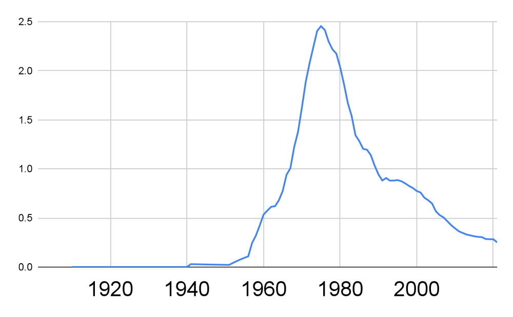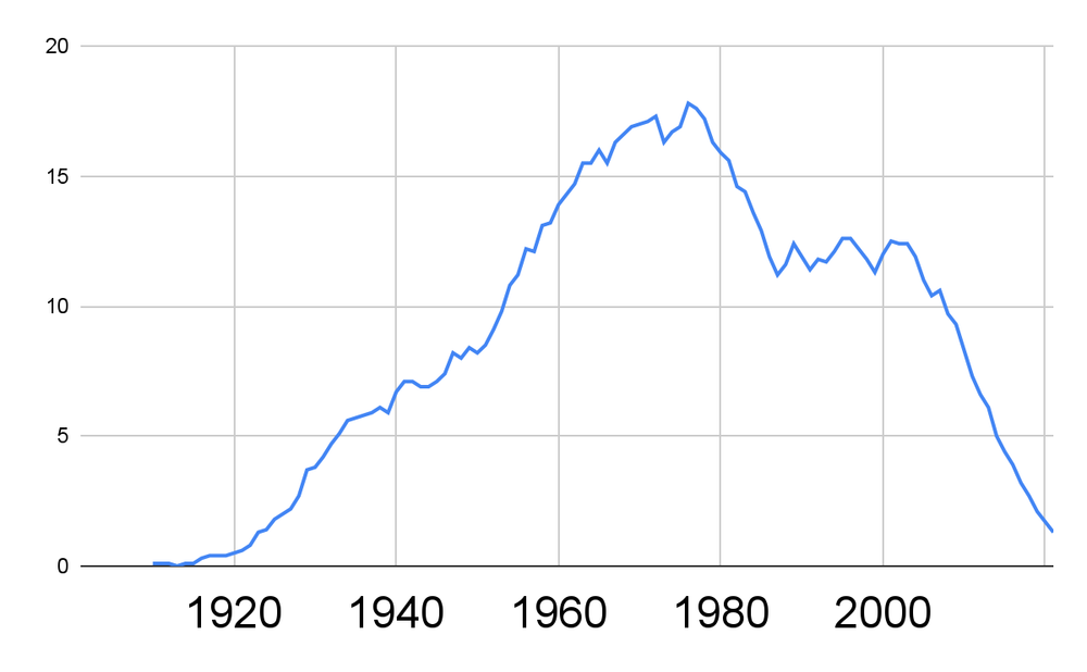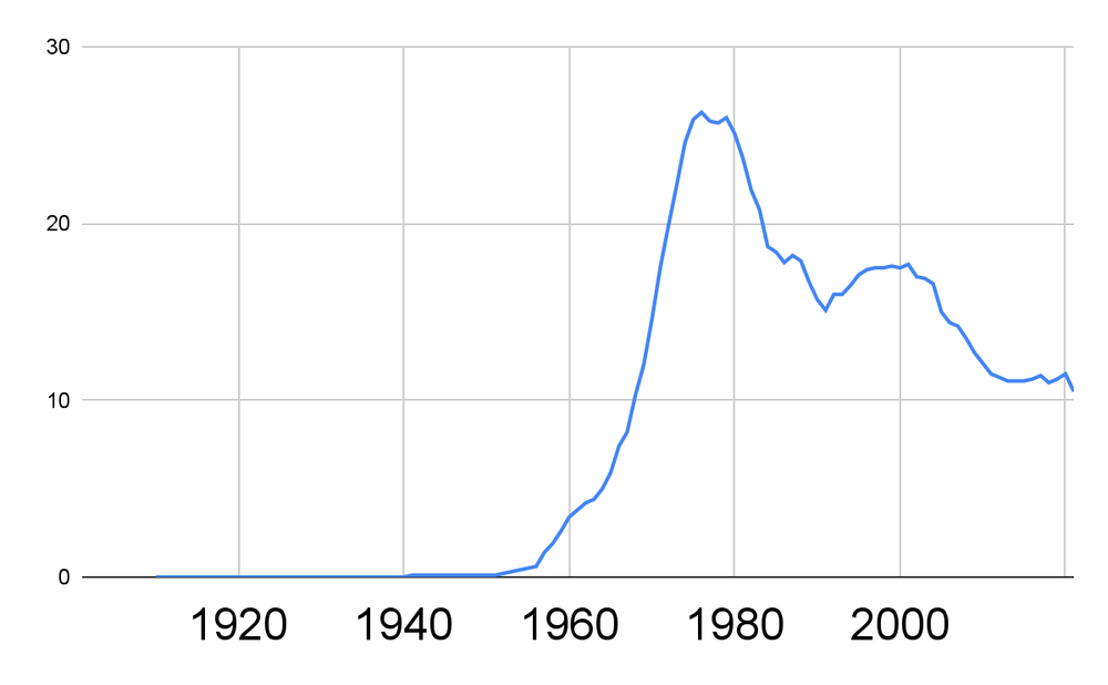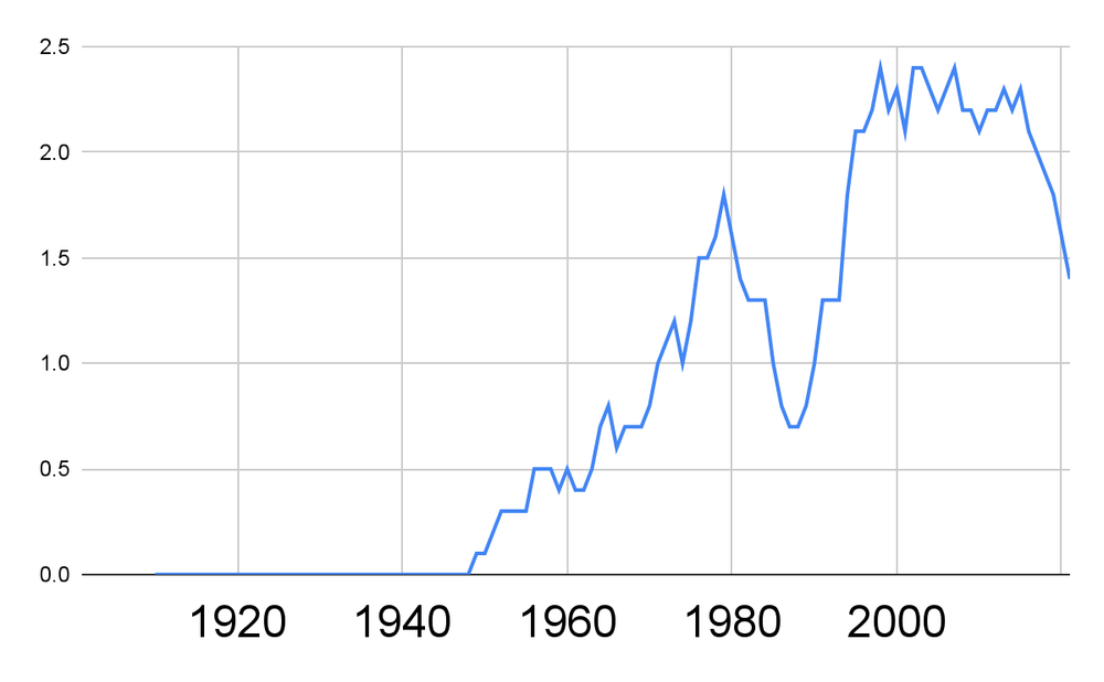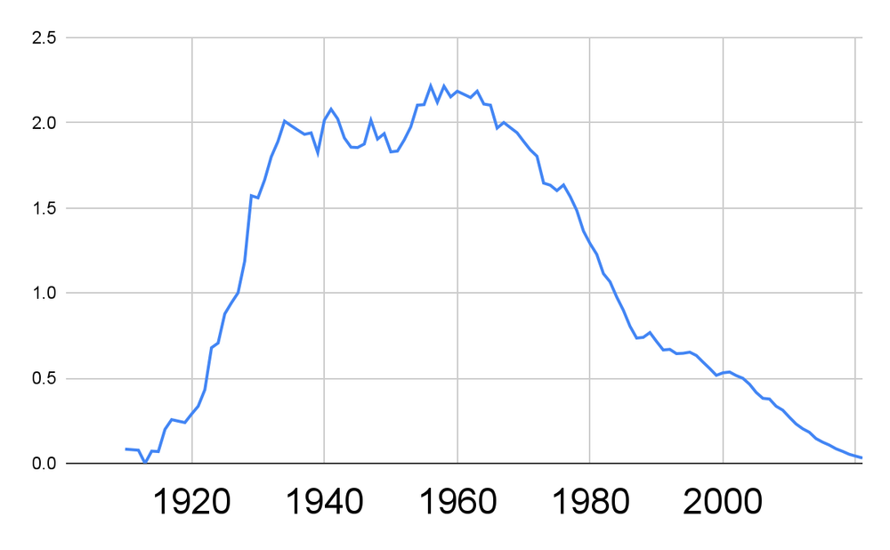 This dataset ends in 1950. Seeing what happened after that is a bit challenging, but here we go.